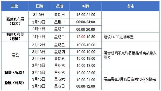 1.布展時間截止至2025年3月11日(星期二)19:30,在此時間后展品不允許再運入展館并布展。