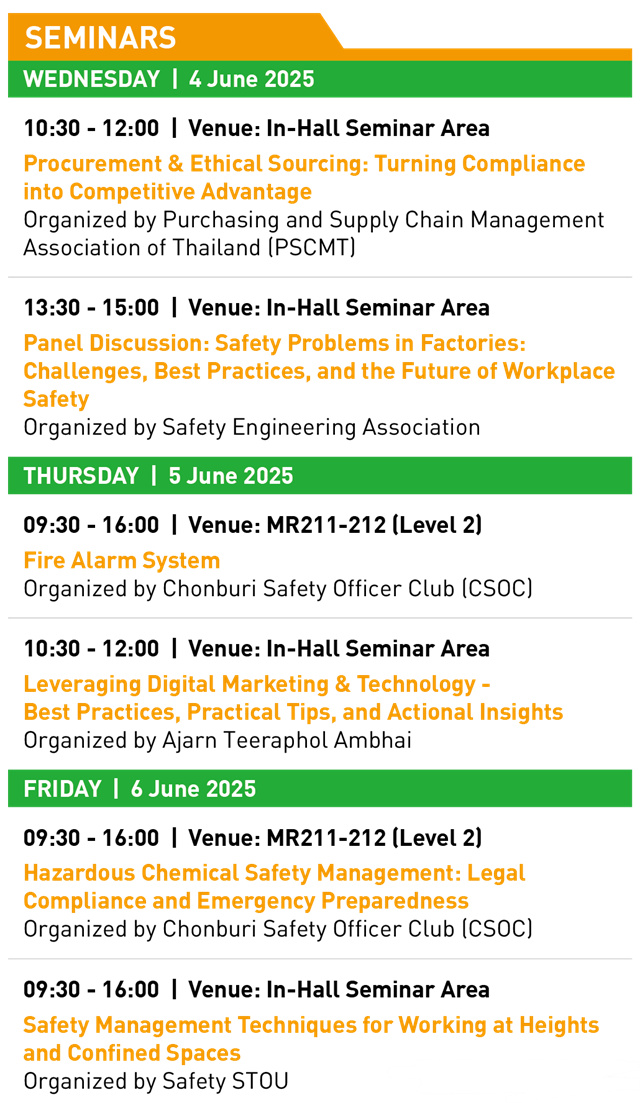 第二屆泰國勞動(dòng)保護(hù)用品交易會(huì)(泰國勞保會(huì),CIOSH Thailand 2025)將于6月4-6日在曼谷國際貿(mào)易展覽中心(BITEC)EH103-104號(hào)館拉開帷幕!本屆展會(huì)吸引了來自中國、印度、韓國、日本、馬來西亞等國家與地區(qū)逾200余家展商攜創(chuàng)新成果齊聚曼谷。為了讓大家的參展與參觀之旅更加順利,特此附上泰國勞保會(huì)展會(huì)攻略,帶您輕松逛展!